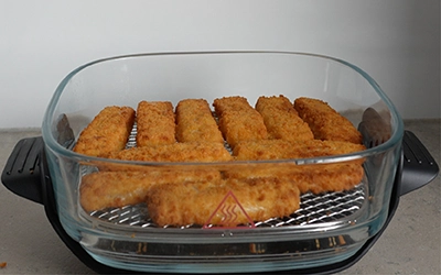 Ein weiterer Test mit Fischstäbchen zeigte ebenfalls ein sehr homogenes Ergebnis, da diese flach im Behälter liegen und die Hitze dadurch besser verteilt wird.