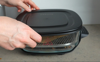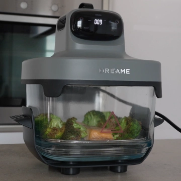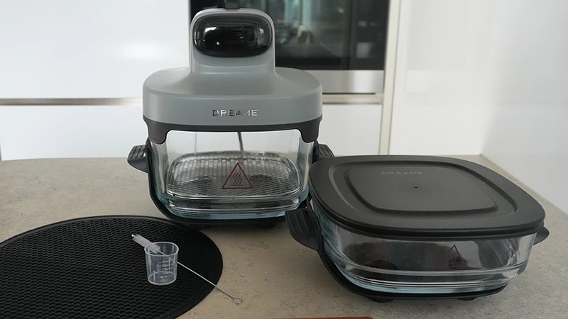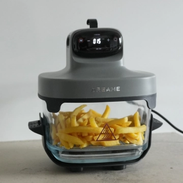 Die Dreame Tasti 5-in-1 ist eine vielseitige und portable Heißluftfritteuse, die vor allem durch ihre Glasbehälter und die damit verbundene Sichtkontrolle sowie die Möglichkeit zum direkten Transport der Speisen überzeugt.