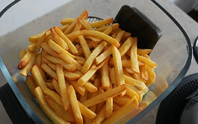 Im Air-Fryer-Modus wurden Pommes getestet, bei denen sich nach der empfohlenen Garzeit von 18 Minuten zunächst ein durchwachsenes Ergebnis zeigte: Einige Pommes waren knusprig, andere noch weich.