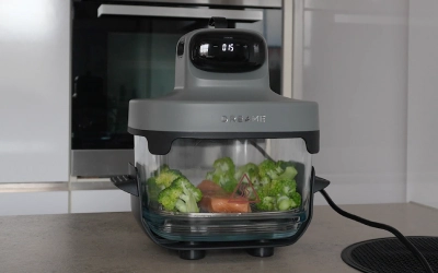 Das Besondere: Speisen lassen sich nicht nur zubereiten, sondern direkt im Behälter servieren, aufbewahren und sogar mitnehmen. Die transparente Bauweise ermöglicht dabei jederzeit den Blick auf das Gargut, während das portable Konzept die Nutzung zu Hause, im Büro oder unterwegs erleichtert.