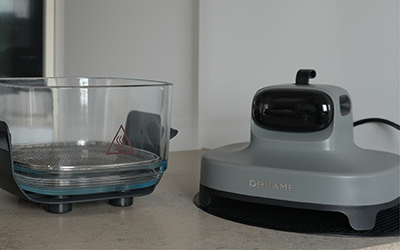 Dreame hat zudem Vorkehrungen getroffen, um Verbrennungen durch das Material vorzubeugen. Neben einem Sicherheits-Topgriff gibt es eine Temperaturfühleranzeige auf den Glasbehältern, die nach Überschreiten der 65-°C-Marke beginnt, sich hellrot zu verfärben. Ab 90 °C leuchtet die gesamte Anzeige hellrot.