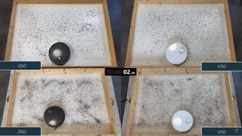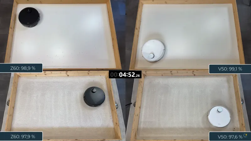 Unterschied: Der Z60 agiert etwas vorsichtiger (mehr Abstand bei Möbeln), während der V50 oft näher heranfährt. Das Verhalten lässt sich aber per Einstellung anpassen.