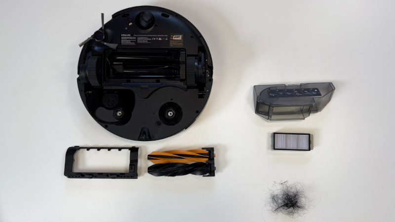 Dank der HyperStream Detangling DuoBrush nimmt der Roboter auch lange Haare zuverlässig auf – ohne dass sie sich in der Bürste verheddern.
