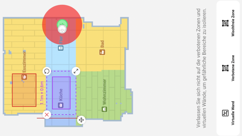 In der App können virtuelle Wände, komplette Sperrbereiche und wischfreie Zonen präzise gesetzt werden – der Matrix hält diese Grenzen zuverlässig ein.