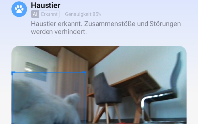 Besonders nützlich ist das, wenn man unterwegs kurz nach Haustieren schauen oder sich allgemein vergewissern möchte, dass zuhause alles in Ordnung ist. Der Zugriff ist abgesichert und der Roboter macht klar kenntlich, wenn diese Funktion genutzt wird.