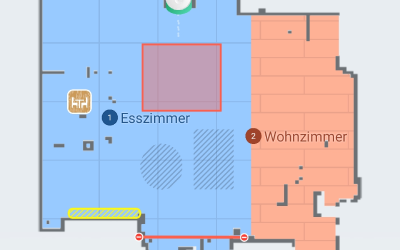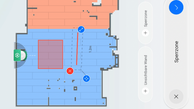 Über die App lassen sich virtuelle Wände und Sperrzonen einfach festlegen, sodass der Roboter nur die gewünschten Bereiche reinigt.