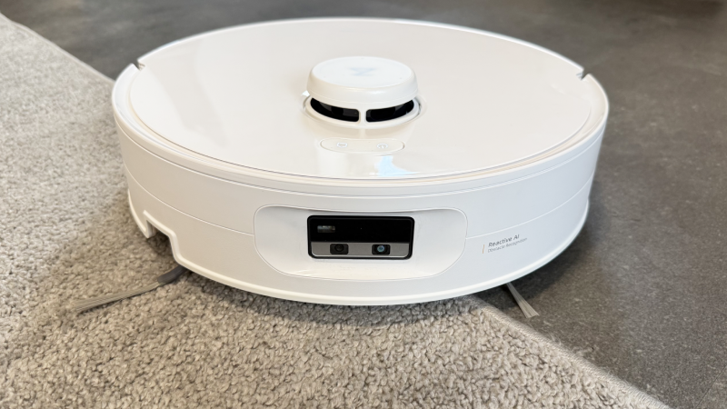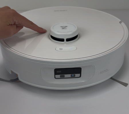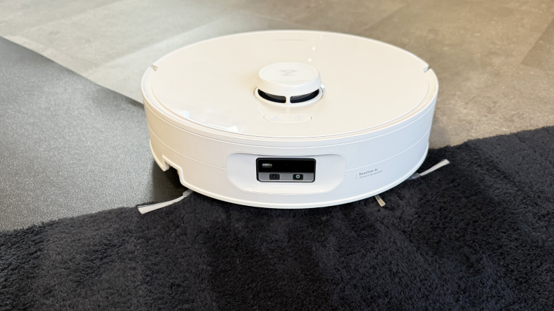 An der Front sitzt eine Kamera, die vor allem die Hinderniserkennung unterstützt. Ob Kabel, kleinere Gegenstände oder alltägliche Stolperfallen – die Kamera hilft dem Roboter dabei, Objekte besser zu erfassen und sinnvoll darauf zu reagieren.