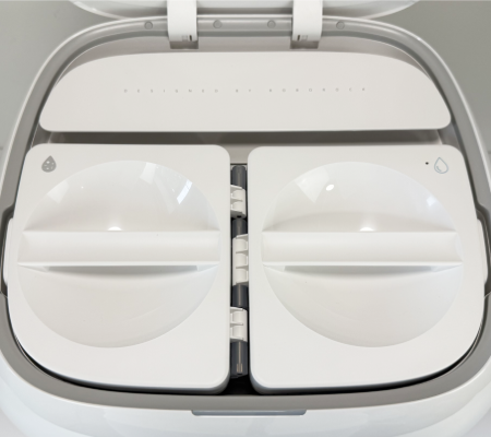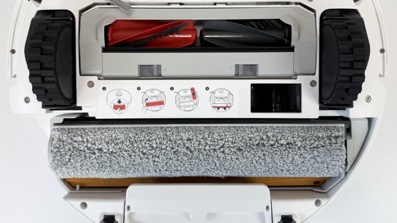 Das klingt zunächst nach einer simplen technischen Änderung, macht in der Praxis aber einen großen Unterschied. Im Roboter sitzt nämlich nicht nur ein Frischwasser-, sondern auch ein Schmutzwassertank, wodurch die Walze während des Wischens fortlaufend gereinigt werden kann. Genau darin liegt die große Besonderheit dieses Modells.