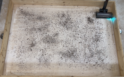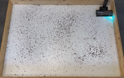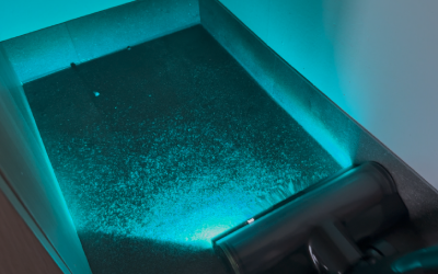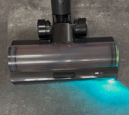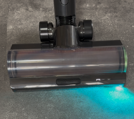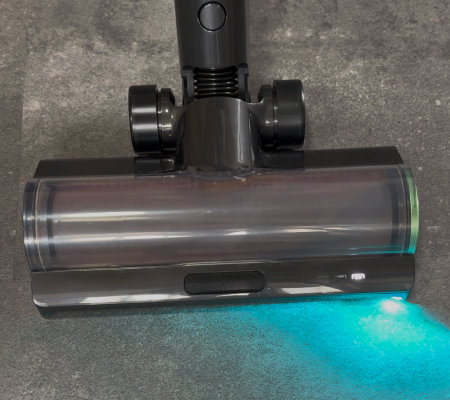 Echt schockierend, was da zum Vorschein kommt: Beide Bodendüsen sind mit der CelesTect-LED-Beleuchtung ausgestattet, die selbst feinste Staubpartikel auf dem Boden sichtbar macht. Der breite Lichtwinkel sorgt für eine gleichmäßige Ausleuchtung und hilft, Schmutz auch in dunklen Ecken zuverlässig aufzuspüren. Man sieht durch das blaue Licht wirklich alles, was ansonsten nicht zu erkennen ist.