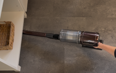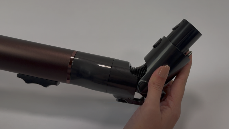 Natürlich kann man mit dem Akkusauger auch auch einfach flach unter Möbel gleiten. Deutlich komfortabler ist es jedoch, wenn man die integrierte Knickfunktion im Saugrohr nutzt. Per Knopfdruck lässt sich das Rohr abwinkeln, sodass der Sauger mühelos unter niedrige Betten, Sofas oder Kommoden gelangt – ganz ohne sich zu bücken. Das schont den Rücken und ermöglicht eine gründliche Reinigung, selbst in schwer erreichbaren Bereichen. Dass das Saugrohr zusätzlich in der Höhe verstellbar ist, steigert den Komfort und vor allem auch die Reichweite nochmal deutlich.