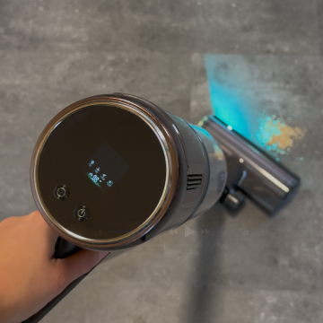 Das große LCD-Farbdisplay liefert alle wichtigen Informationen auf einen Blick. Neben Akkustand und Leistungsstufe zeigt es auch eine Einschätzung der erkannten Schmutzmenge an – ein nettes Extra, das den Reinigungsvorgang noch transparenter macht. Die Anzeige ist kontrastreich, gut ablesbar und reagiert schnell auf Änderungen im Betriebsmodus.