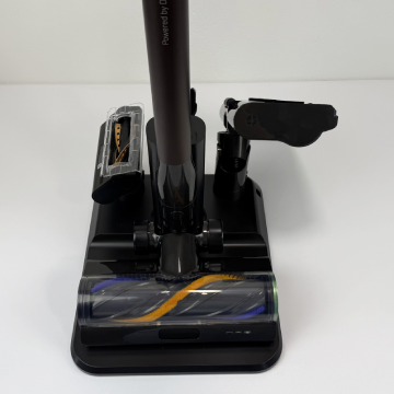 Der Wechsel zwischen den Aufsätzen funktioniert dank präziser Klickverbindungen schnell und unkompliziert. Durch die beigelegten Düsen kann der V30 auch als Handstaubsauger genutzt werden – ideal für Polster, Treppen oder das Auto. Für die Bodenreinigung liegen zwei Bürstenwalzen bei: eine weiche Hartbodenwalze, die besonders sanft zu empfindlichen Belägen wie Parkett ist, und eine Universaldüse mit härteren Borsten, die speziell für Teppiche und gemischte Böden ausgelegt ist.