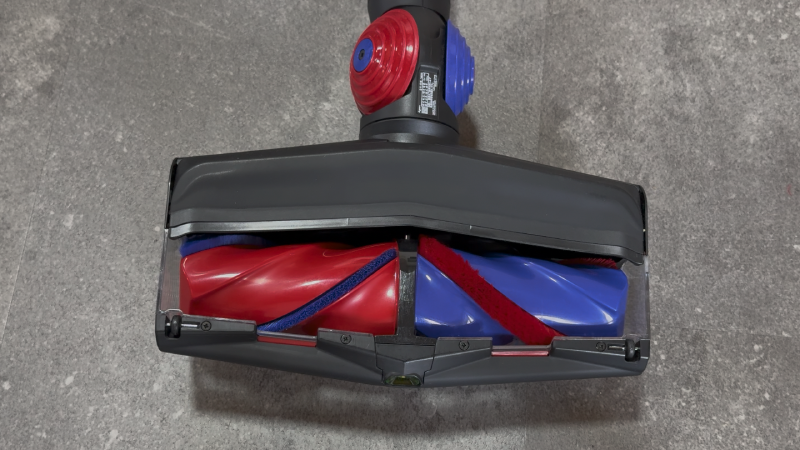 Der V16 ist richtig stark bei langen Haaren und Tierhaaren. Die Anti-Tangle-Bodendüse mit zwei konisch zulaufenden Bürstenrollen entwirrt Haare beim Saugen, sodass sich die Walzen deutlich weniger umwickeln.