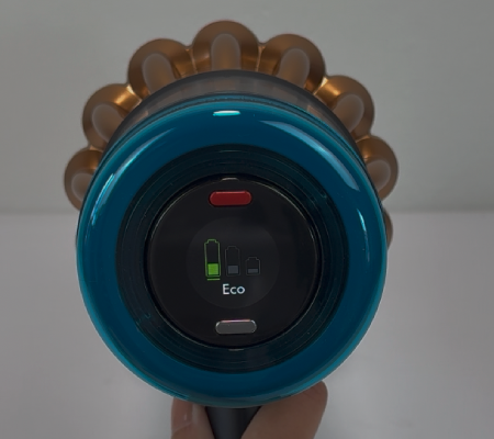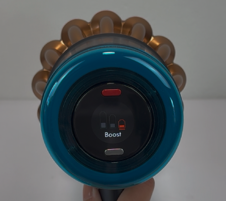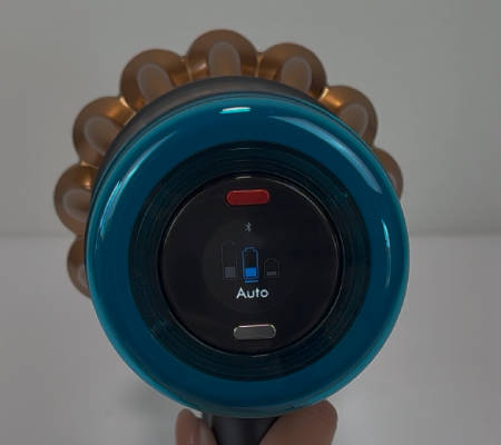 Im Alltag spielt aber nicht nur die Verarbeitung eine Rolle, sondern vor allem die Bedienung. Und da gehört der Powerknopf ganz klar zu den Punkten, über die man kurz sprechen muss: Mit derselben Hand erreicht man ihn bei normalem Griff eigentlich nur dann bequem, wenn man sehr lange Finger hat. Ansonsten wird der Startknopf mit der zweiten Hand gedrückt. Ob das stört, muss am Ende jeder selbst entscheiden – wichtig ist aber: Man muss den Knopf nicht mehr permanent gedrückt halten, wie es bei älteren Dyson-Modellen lange der Fall war.
