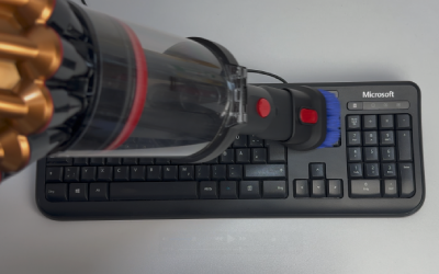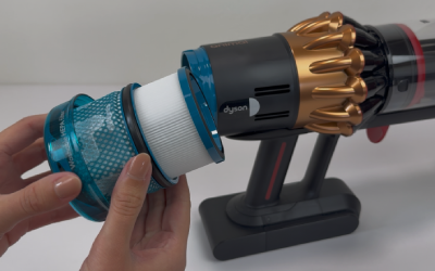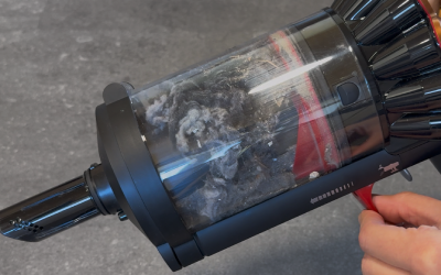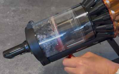 Dyson gibt beim Staubbehälter zwar ein Fassungsvermögen von 1,35 Litern an – das klingt erstmal nach richtig viel. In der Praxis muss man das aber relativieren: Dieses hohe Volumen wird vor allem durch den Komprimierungsmechanismus erreicht. Führt dieser zu Blockaden und kann nicht genutzt werden, ist das wahre Volumen deutlich kleiner.