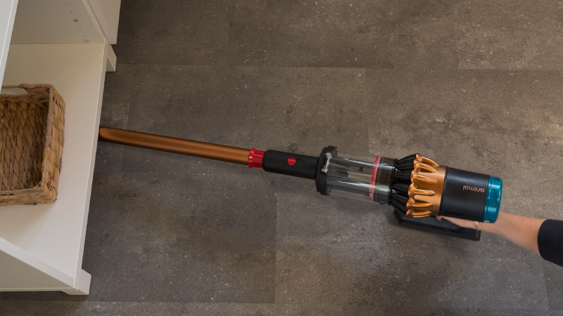 Das Gerät liegt gut in der Hand und was bei Dyson ebenfalls typisch ist – und das zeigt sich auch beim V16 – ist die sehr hohe Wendigkeit. Das Gerät ist extrem flexibel und beweglich. Man kommt damit leicht um Stuhlbeine herum, kann schnell die Richtung wechseln und den Sauger insgesamt sehr direkt steuern. Für alle, die schon Dyson nutzen, ist das ein vertrautes Handling. Wer aber von einem anderen Akkusauger umsteigt, dem kommt diese Art der Führung anfangs oft ungewohnt vor – das ist dann aber vor allem Gewöhnungssache.